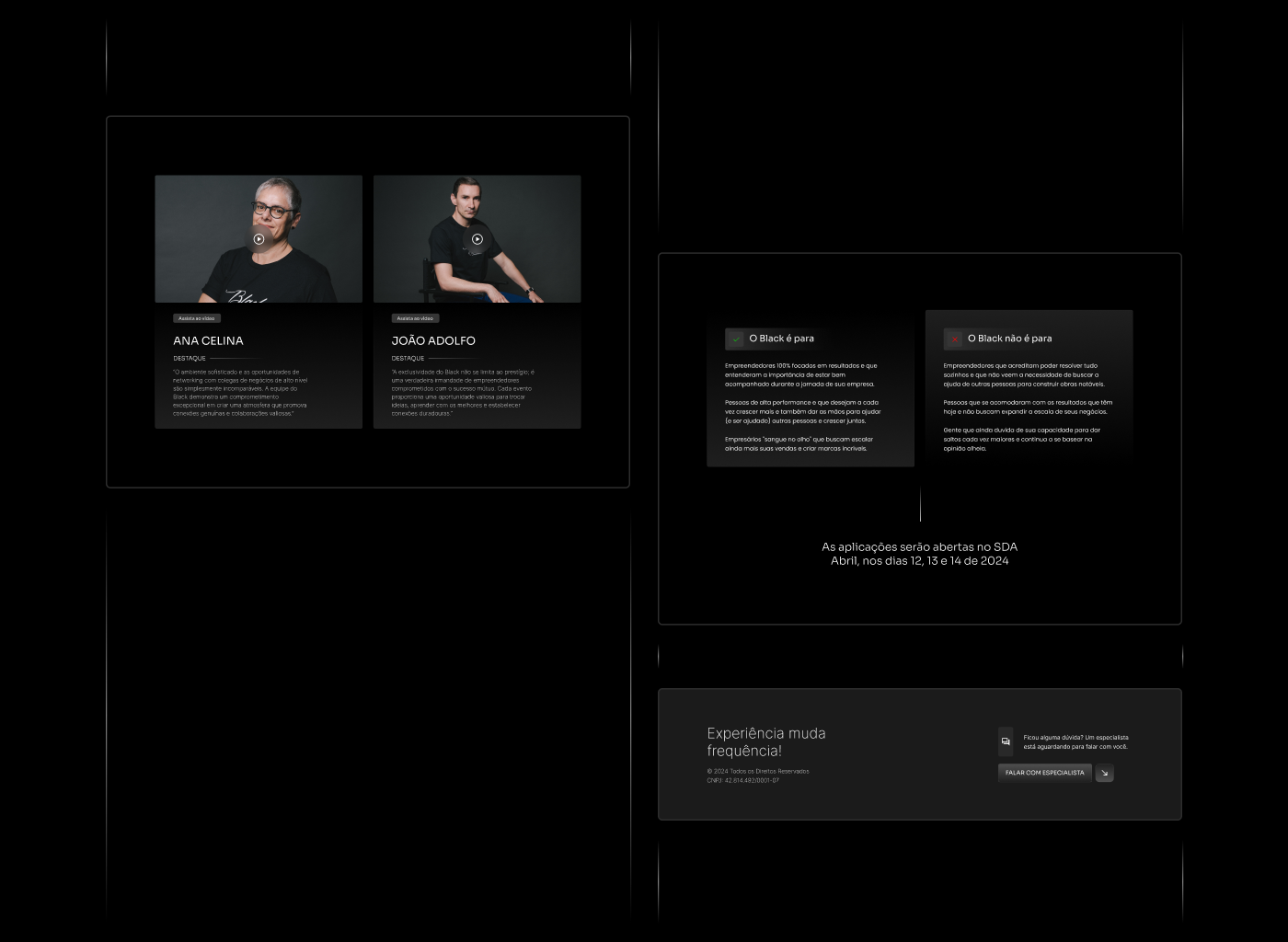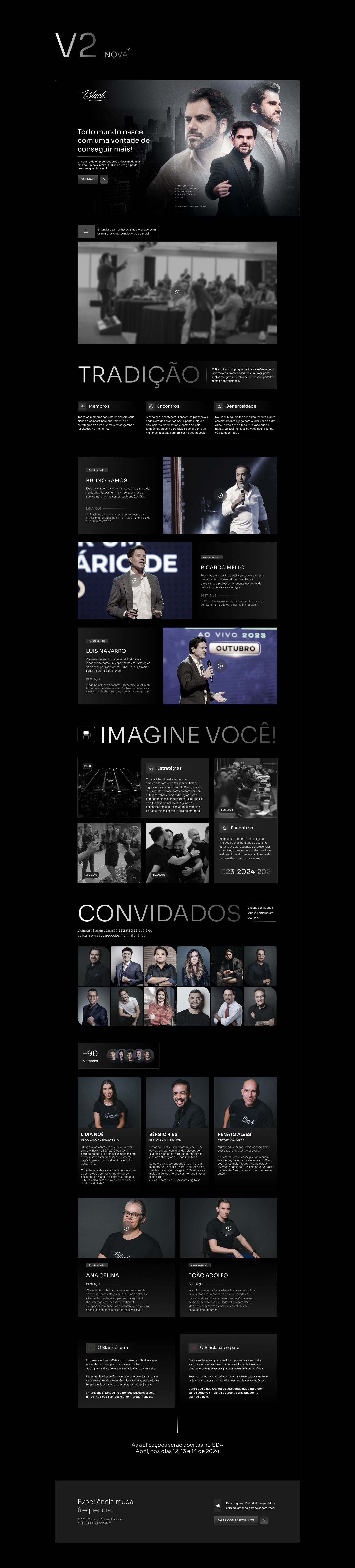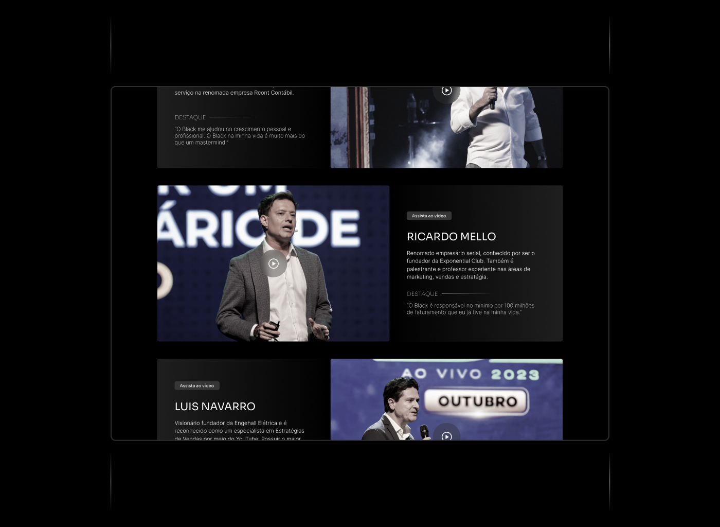 O Black é um grupo que reúne alguns dos maiores empreendedores do Brasil há 9 anos, com o objetivo de alcançar a mentalidade necessária para obter a maior performance. Um grupo de empreendedores unidos pode até mesmo transformar um país inteiro! O Black é formado por pessoas que vão além!