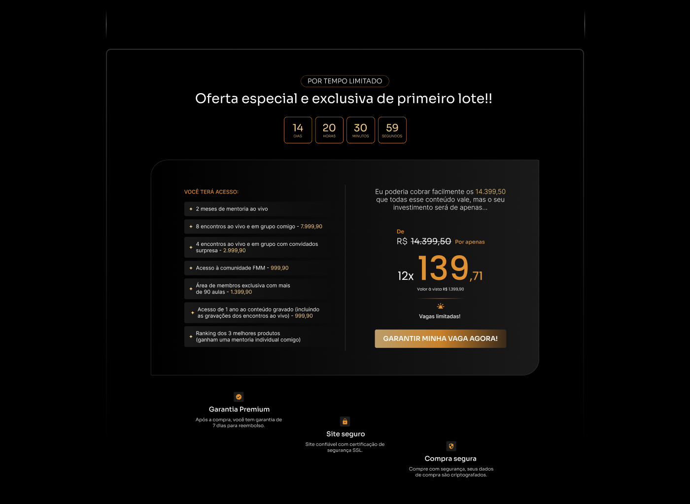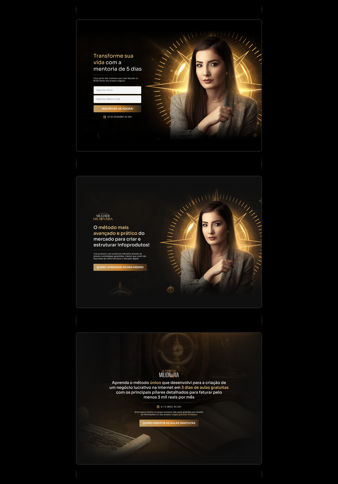 Foi realizado um lançamento com um evento online. A estrutura consistiu em páginas de coleta de leads e páginas de vendas. No total, foram construídos quatro sites completos aos quais os usuários tiveram acesso ao longo do lançamento.”
