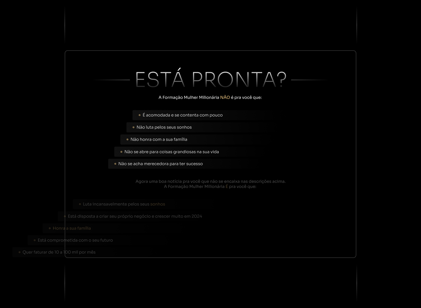 No início de 2024, ela decidiu reabrir as vagas do seu treinamento Formação Mulher Milionária, que tem como objetivo ajudar mulheres a ter sucesso no marketing digital.